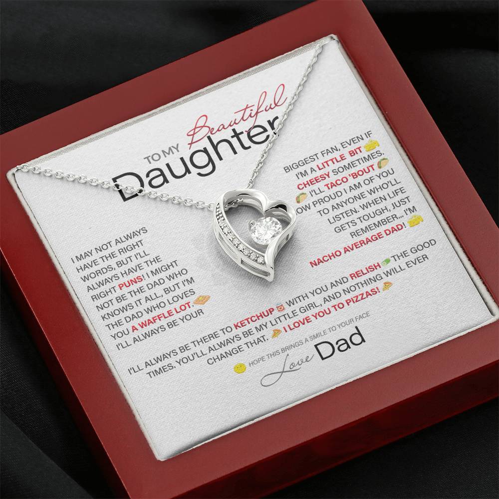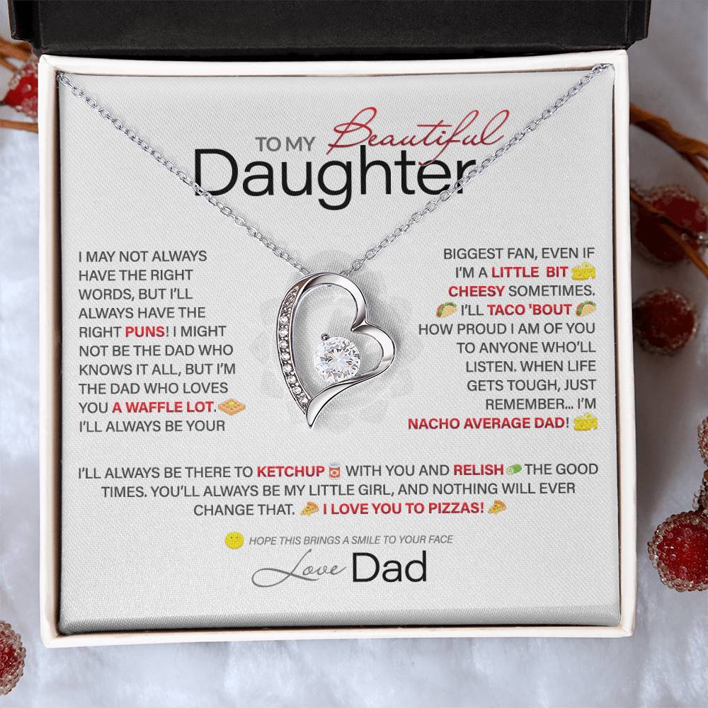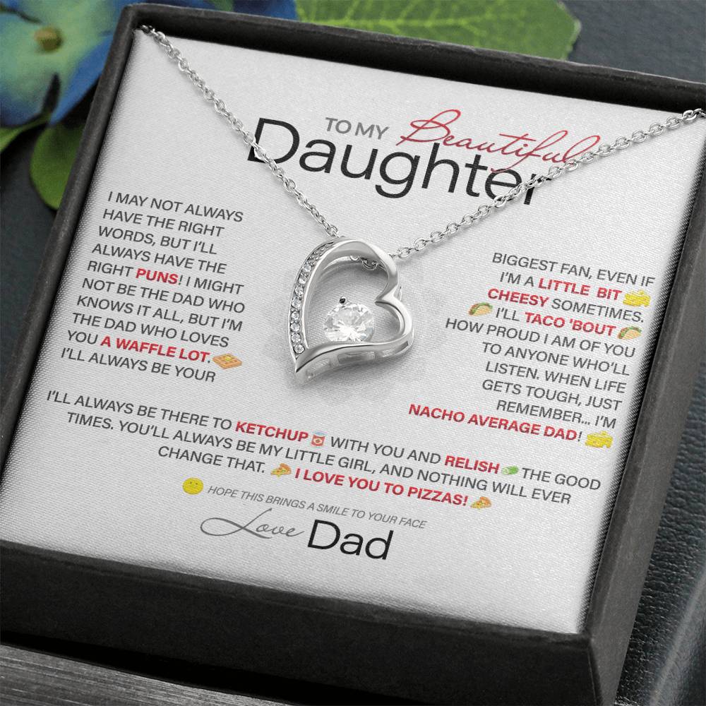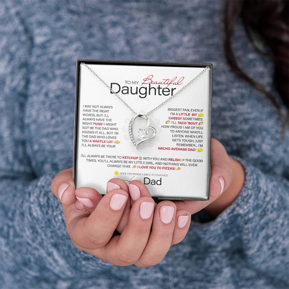 Best Gift for Daughter: Dad's Forever Punny Love Heart Necklace to Crack Her Up[Light]