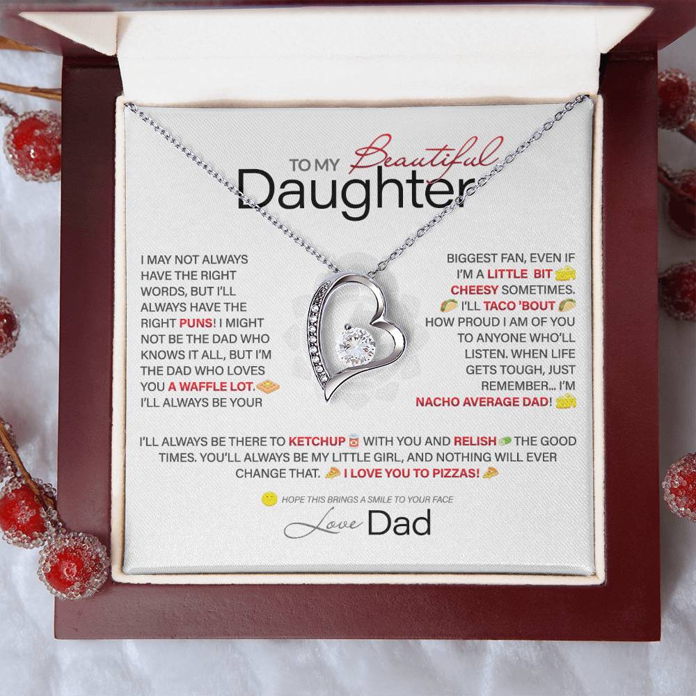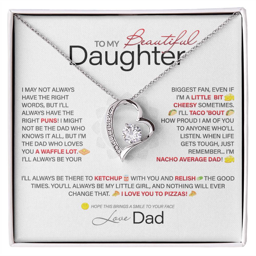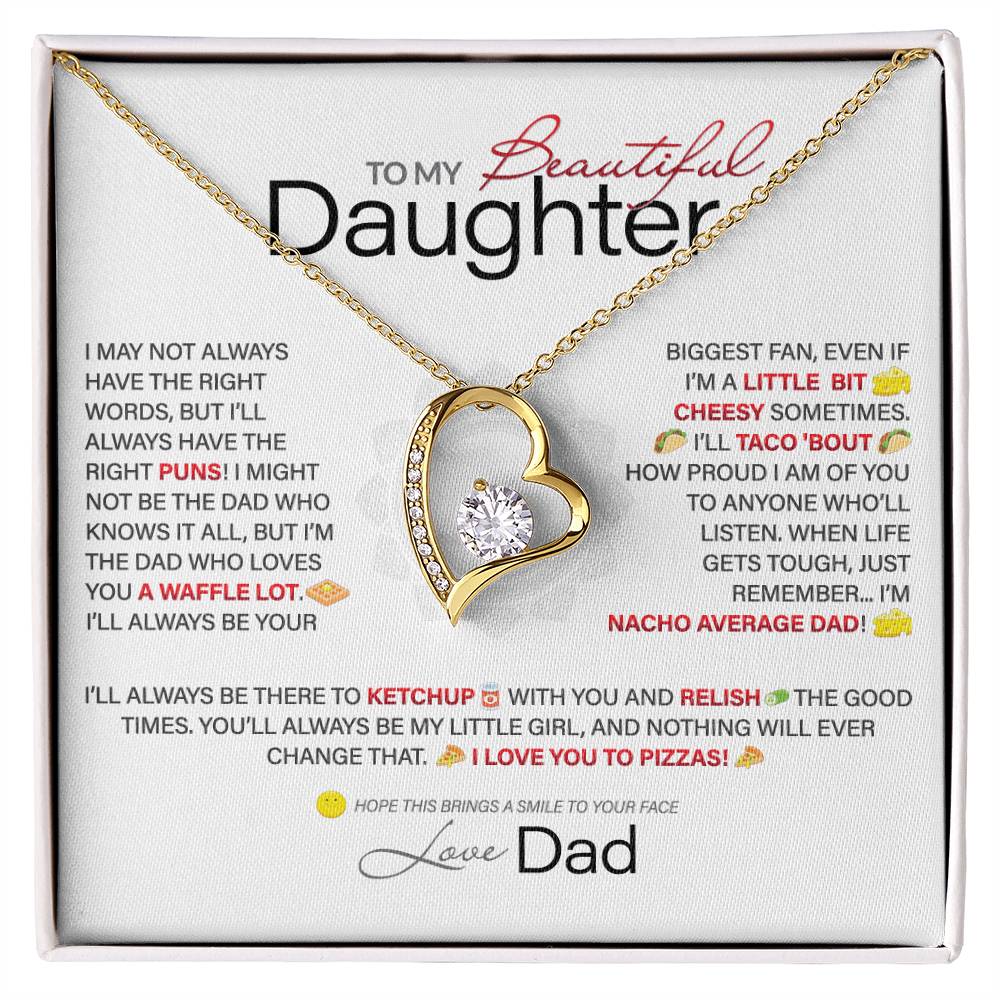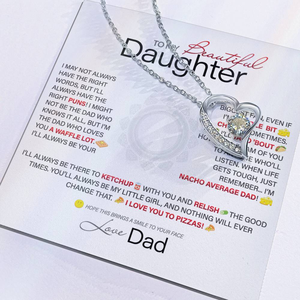 Best Gift for Daughter: Dad's Forever Punny Love Heart Necklace to Crack Her Up[Light]