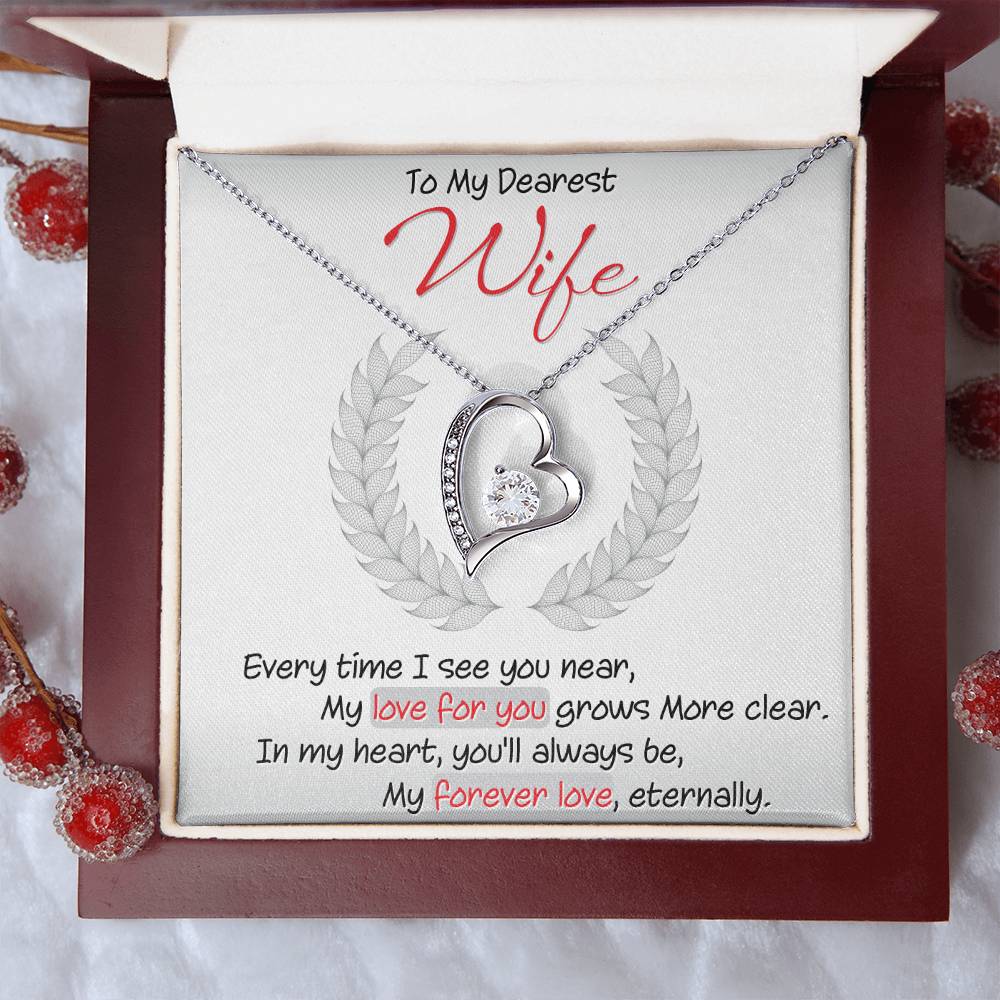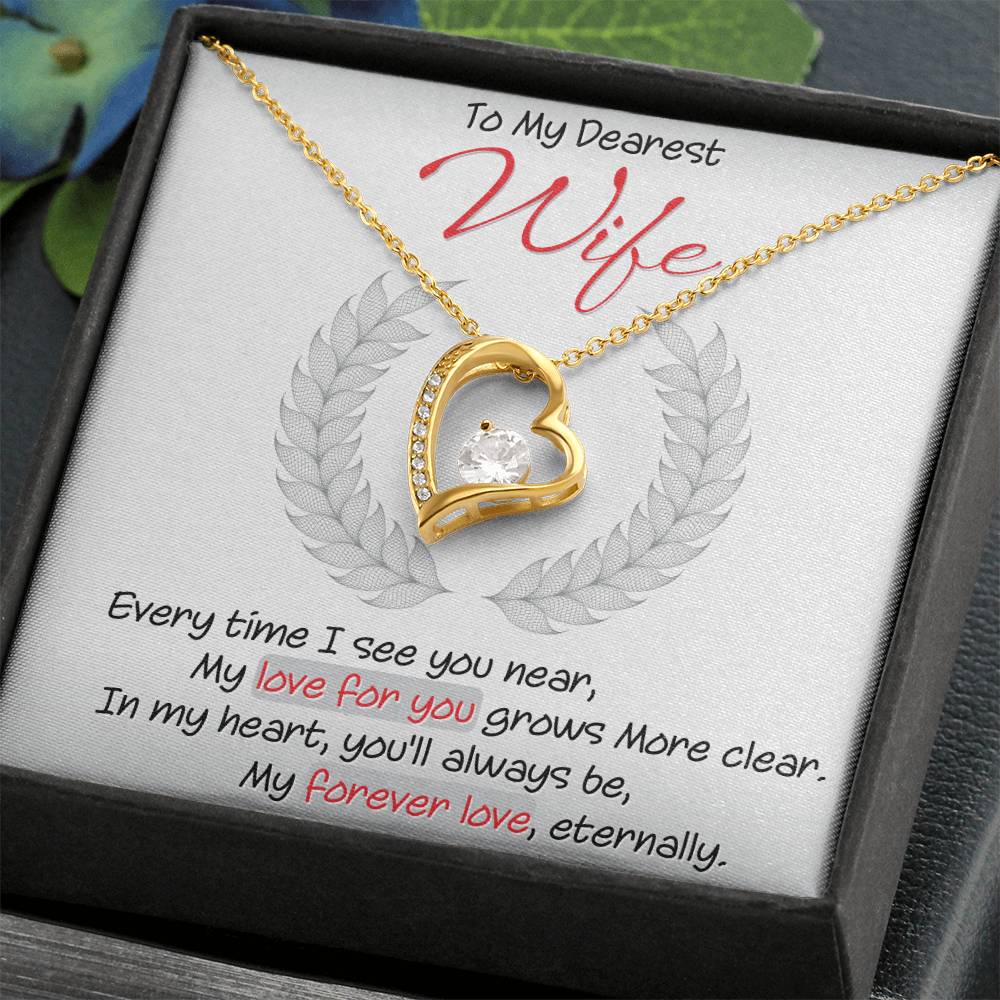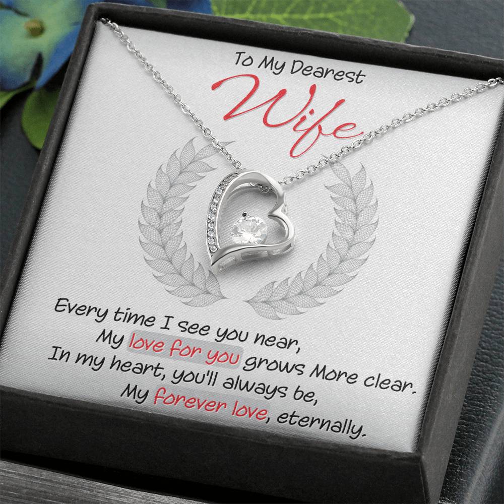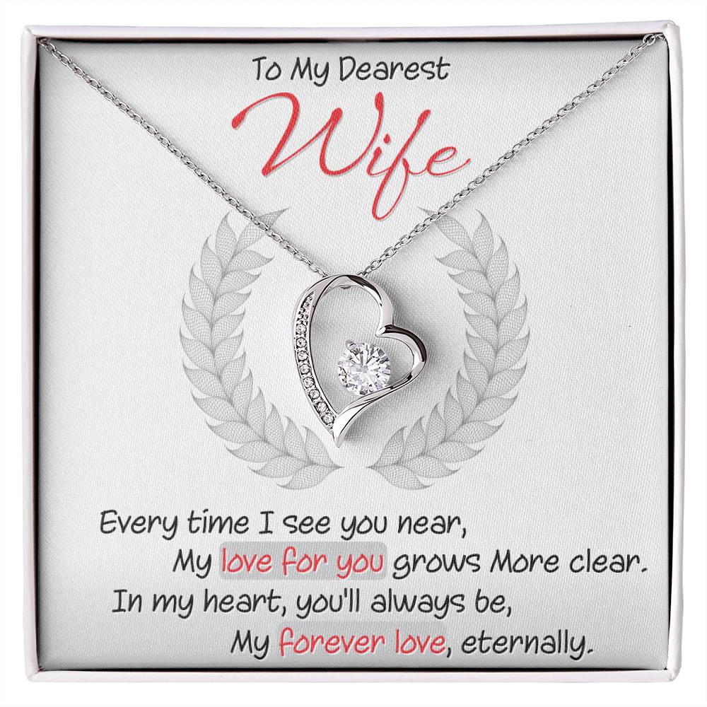 Surprise your wife with the perfect gift she’ll treasure forever. Our Forever Love Heart Necklace, crafted in 14k white gold or 18k yellow gold over stainless steel, is the ideal gift for your wife on any special occasion. The stunning cubic zirconia pendant symbolizes the unbreakable bond between two souls.